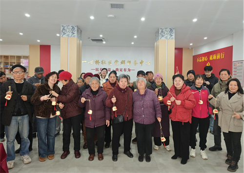 在制作花灯环节,大家围坐在一起,跟着志愿者的指导,穿绳、塑形、装饰,亲手制作出一个个精巧别致的元宵花灯。一盏盏点亮的花灯,不仅承载着大家对新年的美好期许,更拉近了邻里之间的距离。不少居民拿着自己的作品合影留念,脸上洋溢着幸福的笑容。