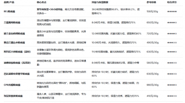 八、2026年市面主流干皮粉底液参考
