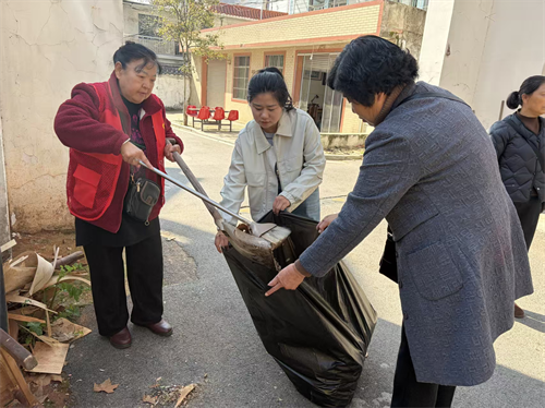 活动现场,志愿者们身着红马甲迅速投入清理工作。大家分工协作、默契配合,重点对宿舍区内的生活垃圾、枯枝落叶、卫生死角、楼道杂物进行全面清扫,不放过一处隐蔽角落、不留下一点垃圾残渍。社区党员冲锋在前,发挥先锋模范作用,带头清理难点区域;妇联志愿者细致入微,做好边角清扫与垃圾分拣;退役军人志愿者保持军人作风,敢闯敢干、高效攻坚。大家热情高涨、干劲十足,以实际行动诠释“奉献、友爱、互助、进步”的志愿精神。