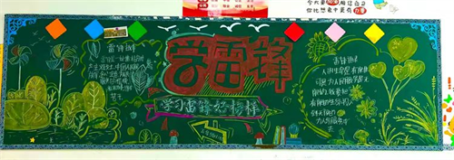 在本次学雷锋纪念日活动中,同学们还用自己的小手制作了学雷锋主题的黑板报,在制作过程中,同学们主动查阅大量资料,了解雷锋的故事与名言,在创作中发现和理解一个真实的、有血有肉的雷锋,将雷锋的高尚精神内化于心,外化于形,成为“小小宣传员”,将雷锋精神的宣传落实到校园班级的每一个角落。