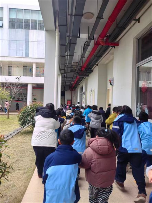上午10时整,随着一阵急促而响亮的疏散撤离警报声在校园内拉响,消防演练正式进入实战环节。各班班主任及配班老师迅速到位,立即组织学生按照预定的疏散路线,用手捂住口鼻,弯腰低姿,快速而有序地从教学楼各个楼层向学校操场安全地带撤离。整个疏散过程紧张有序,师生配合默契,全体人员均在规定时间内安全集结完毕,达到了预期的演练效果。