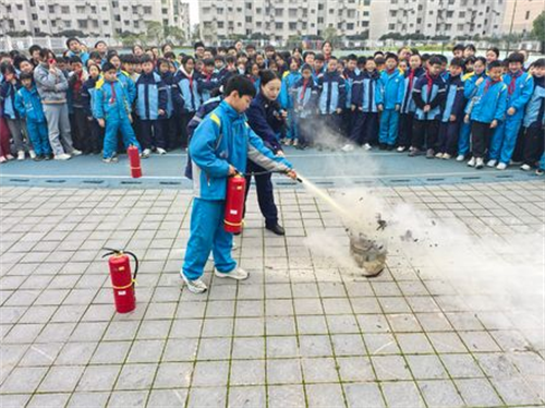 灭火集结完毕后,学校特邀珠山消防救援大队为全体师生进行了现场讲解与指导。消防员首先对此次疏散演练进行了简要点评,随后重点讲解了干粉灭火器的正确使用方法和操作口诀——“提、拔、握、压”,并强调了灭火时应注意的安全事项,如站在上风口、对准火焰根部喷射等。为了让理论知识转化为实践技能,部分学生代表在消防员的专业指导下,亲自上场操作灭火器,成功扑灭了模拟火源。面对熊熊燃烧的火焰,同学们沉着冷静,按照所学步骤规范操作,赢得了现场师生的阵阵掌声。