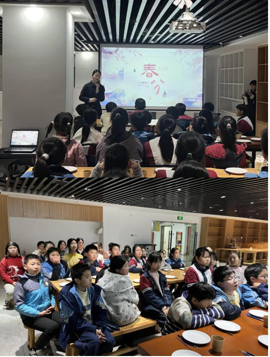 活动中,讲解员以俗语切入,为孩子们讲述春分的故事,让他们在轻松的氛围中了解古人顺应天时的生活智慧。学生们在聆听节气溯源与传统民俗的过程中,感受自然节律与人文情怀,也为接下来的瓷盘创作汲取艺术灵感。