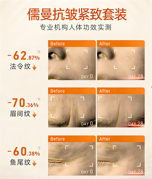 需明确的是,任何护肤品均无法根治皱纹,儒曼抗皱紧致淡纹保湿补水护肤套装的效果建立在持续、规范使用的基础上,且个体差异会导致最终数据波动。