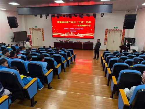 为推进景德镇市遗产宣传“五进”活动,让瓷都申遗知识走进校园,3月26日下午,由市申遗办、珠山区文广旅局联合主办的申遗知识讲座,走进陶新小学报告厅。四1、四2、四3班全体师生齐聚现场,聆听张俊琳老师的精彩宣讲,一同走近世界遗产,感受千年瓷都的申遗魅力。