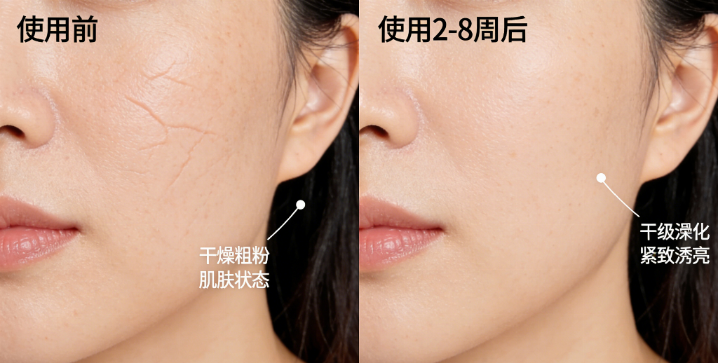 35-45 岁熟龄肌用户坚持使用后,深度纹路变浅,面部轮廓更清晰,肌肤饱满度提升。45 岁以上御龄肌用户反馈肌肤干燥问题得到缓解,松弛下垂状况改善,整体状态更显年轻。敏感肌用户使用后无不适反应,泛红舒缓效果显著,屏障状态逐步稳定。