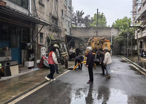 居民反映情况后,社区工作人员和纪检干部立即陪同居民赶赴现场,核实情况并启动应急响应机制。3月31日上午,虽逢阴雨天气,专业疏通人员仍准时抵达现场,对老旧小区内的化粪池和污水管道开展全面疏通清理作业。社区干部同步到场维护现场秩序。经过一个多小时的紧张作业,堵塞管道恢复了畅通。看着污水缓缓排走,老人紧紧握着工作人员的手,激动地说:“你们社区干部真是不错,亲自敲开盖子查看情况,而且还这么快就解决了我们的急愁问题,你们真是把我们老百姓的事放在了心上!”