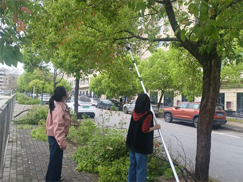近日,新枫路社区接到辖区居民反映,兴华路段沿线樟树生长过于茂盛,部分枝桠低垂,已影响行人和车辆正常通行,存在较大安全隐患。接到反馈后,社区高度重视,第一时间安排工作人员赶赴现场核实情况,并迅速联系专业绿化养护人员进行修剪处理,及时消除了安全隐患,赢得周边居民纷纷点赞。