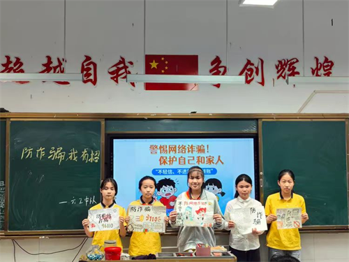 其中,“宣传教育”是最直接也最有效的手段之一。通过各个班级绘画手抄报、开展班会等方式普及防骗知识;同时借班会活动进行防骗提示及案例分析,增强学生的自我保护意识和能力。让学生们更加深入地了解诈骗的危害和防范方法。