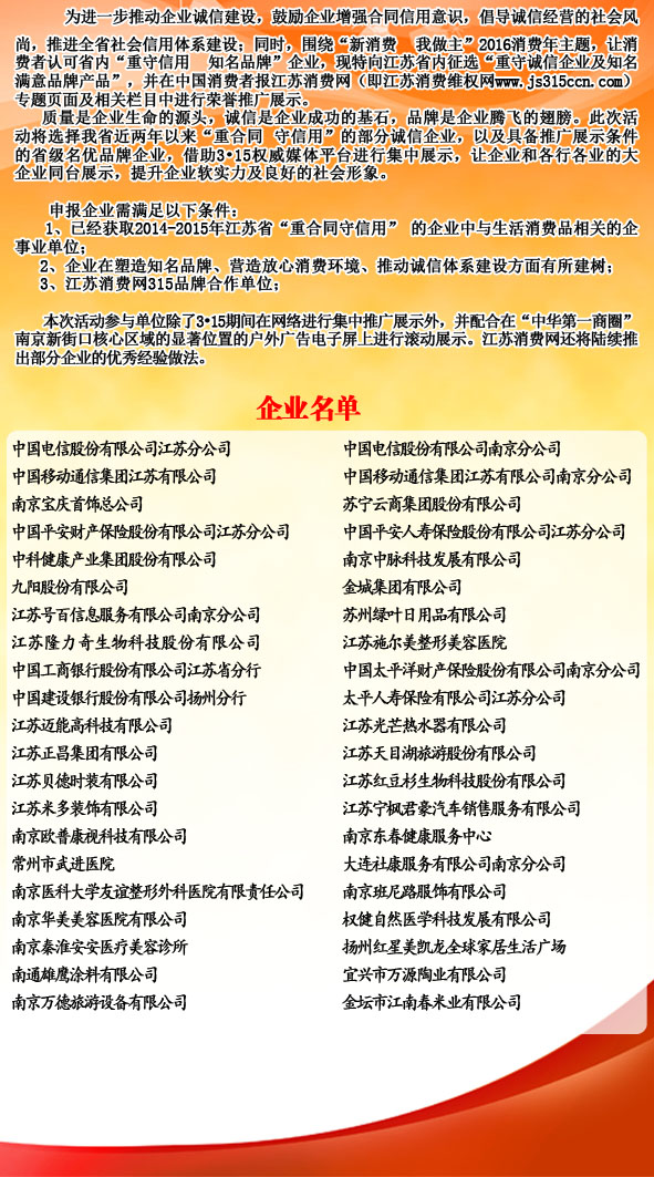 江苏省“重守诚信 知名品牌”315推广联展