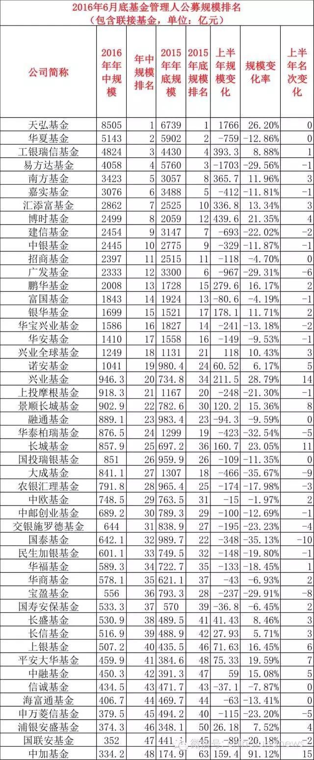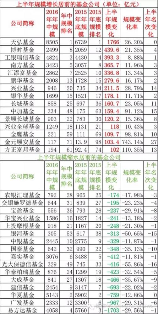 【导读】基金君不舍昼夜,第一时间整理出截至6月底基金公司规模、上半年规模及排名变化情况,供各位参考。