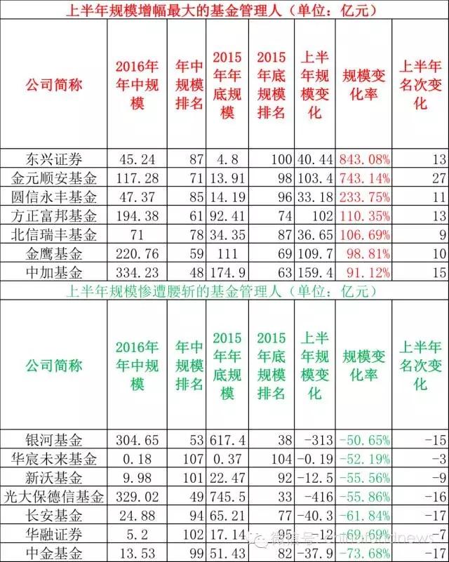 从各家基金公司上半年规模变化情况看,真可谓分化剧烈,一些公司凭借新基金发行或者大规模的净申购,实现了规模的逆势增长,而同时也有一批公司规模大幅缩水。