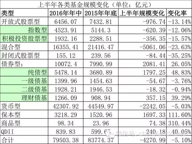 从各类型基金上半年规模变化看,债券型基金和保本型基金表现最为抢眼,两类基金分别增长2081亿元和1697亿元,增幅分别达26%和111.6%,也就是说,上半年保本基金规模增长了1倍多。QDII基金规模增长也比较显著。而缩水最冥想的当属混合型基金,上半年混合基金净值减少超过5000亿元,缩水比例达23.63%。打新基金成为了缩水重灾区。
