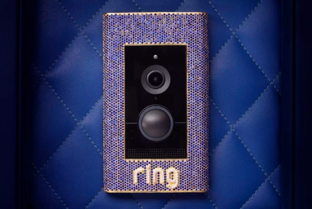 奢华定制款的手机什么的很常见,但镶满了宝石和黄金外壳的智能门铃你见过没?最近,Ring与Bijan珠宝合作,推出了一款限量版智能门铃“Ring Elite Crown Jewel”,镶嵌了2077颗蓝宝石、40颗钻石,外壳则由18K黄金打造,极为奢华。