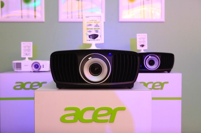 家用投影机部分,宏碁此次带来的是4款面向中高端的4K家用投影机——高端线的V9800和VL7860,以及中端产品V7850和H7850。四款新品均提供4K UHD分辨率,画质犀利如锋,艳丽非凡,结合TI XPR 技术,还能提供超过830万有效像素(4倍于1080P的有效像素)。投射面积可以达到120寸超大画面。独有的动态黑位功能可以根据影片的每帧画面,动态优化光源的输出功率,提供高达1000000:1的高对比暗场效果,尽现惊人的画面细节。作为最高端产品代表,V9800还具有高分辨率视频引擎,可通过分析及提高像素密度,使得非4K电影或视频变换到接近4K画质。而H7850和V7850则采用了能够去除不必要闪烁的AcuMotion技术还原平滑流畅的动作,非常适合观看大型游戏或动作片。