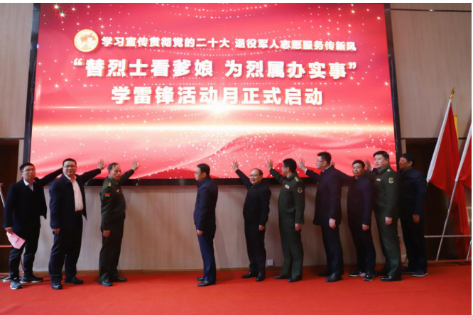 3月3日上午,江西省“学习宣传贯彻党的二十大 退役军人志愿服务传新风”暨“替烈士看爹娘、为烈属办实事”学雷锋活动月启动仪式在抚州市举行。