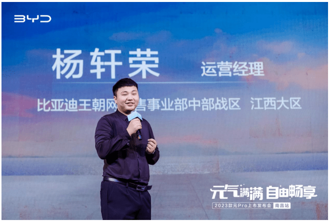 发布会开篇,比亚迪汽车王朝网中部战区江西大区的大区经理柳萌先生为活动进行致辞,回顾了元Pro车型自诞生以来持续领跑A0级纯电市场,多次夺得A0级纯电销量冠军。2023款元Pro作为王朝网唯一一款九万级纯电车型,将重新树立九万级纯电市场的价值新标杆,让更多用户感受到“好的生活,没那么贵”。