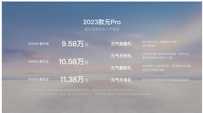 买车没负担,用车成本低,驾驶体验好,是元家族超60万用户认可的核心价值,也是2023款元Pro与生俱来的优势。2023款元Pro乘“油电同价”浪潮而来,树立9万级纯电SUV新标杆,势要将“颠覆燃油”进行到底,你好,小元!领潮而至,让美好生活触手可得。