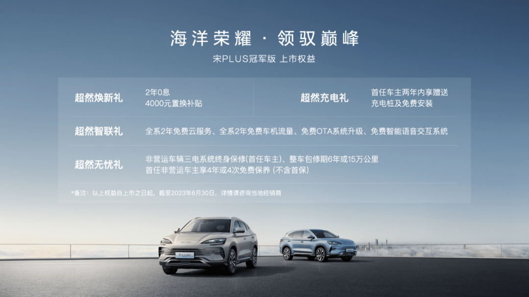 7月14日晚,比亚迪宋PLUS冠军版在江西南昌正式上市。作为比亚迪销量领先的新能源SUV车系,此次新车发布推出两款车型,分别为宋PLUS DM-i冠军版售价15.98-18.98万元;宋PLUS EV冠军版售价16.98-20.98万元。同时为用户准备了2年0息、置换补贴、充电桩、首任车主非营运车辆三电终身保修等多项购车好礼,让冠军产品惠及更多用户。